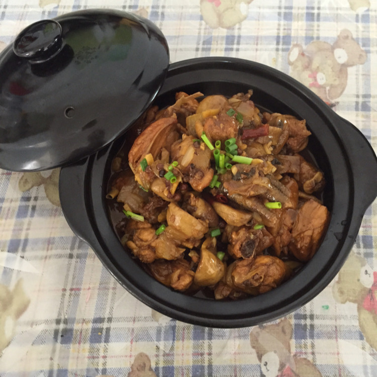 14:煸炒3分钟左右,加入清水,淹过鸡肉。大火烧开后小火慢烧,直至收汁。收汁前可加入冰糖,提味!