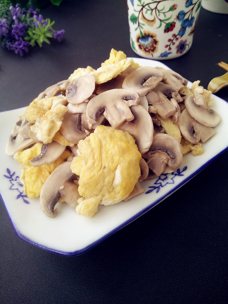 10:这样子一份香香的鸡蛋炒口蘑就完成了。