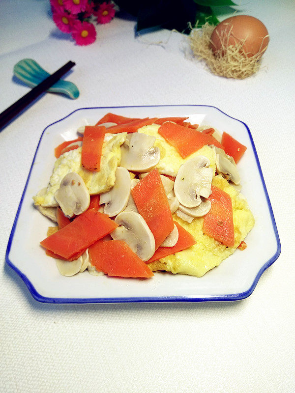 5:分别将口蘑炒至出香,鸡蛋煎至凝固。