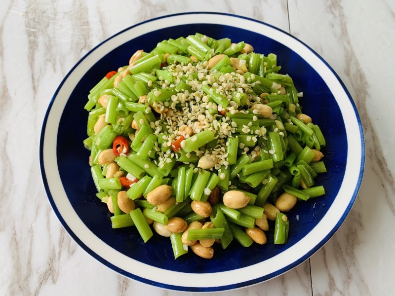空心菜杆200克左右;熟花生米适量;火麻仁15克;