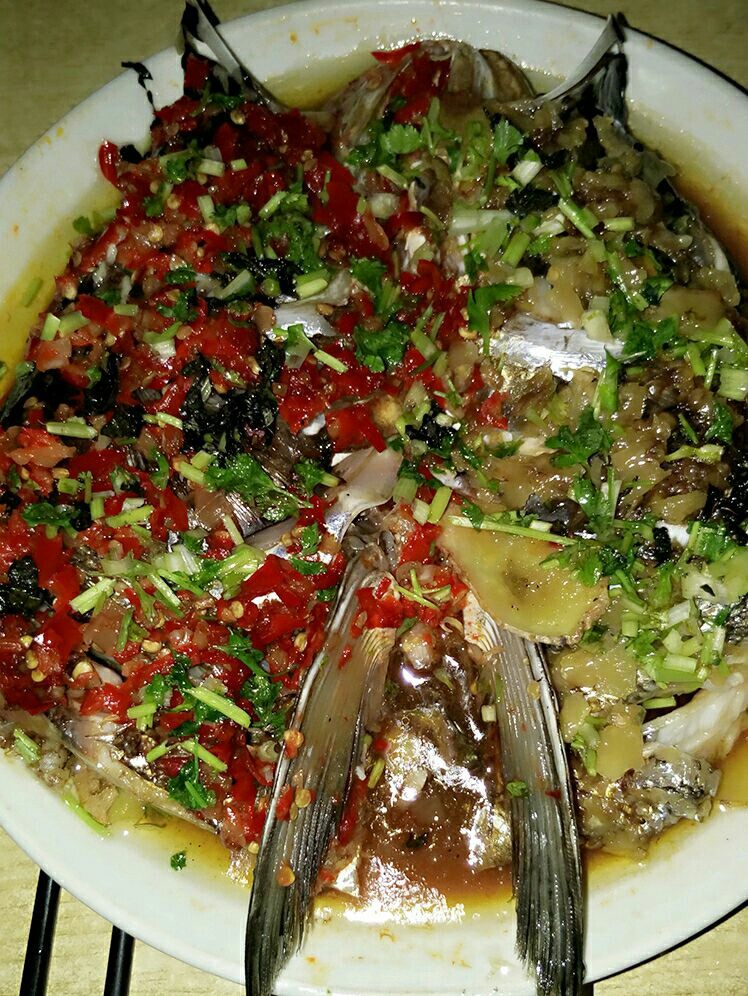 剁椒泡椒适量;盐少许;鸡精适量;姜适量;葱适量;蒸鱼豉油4汤勺;植物油2汤勺;芝麻油少许(没有可以不放);