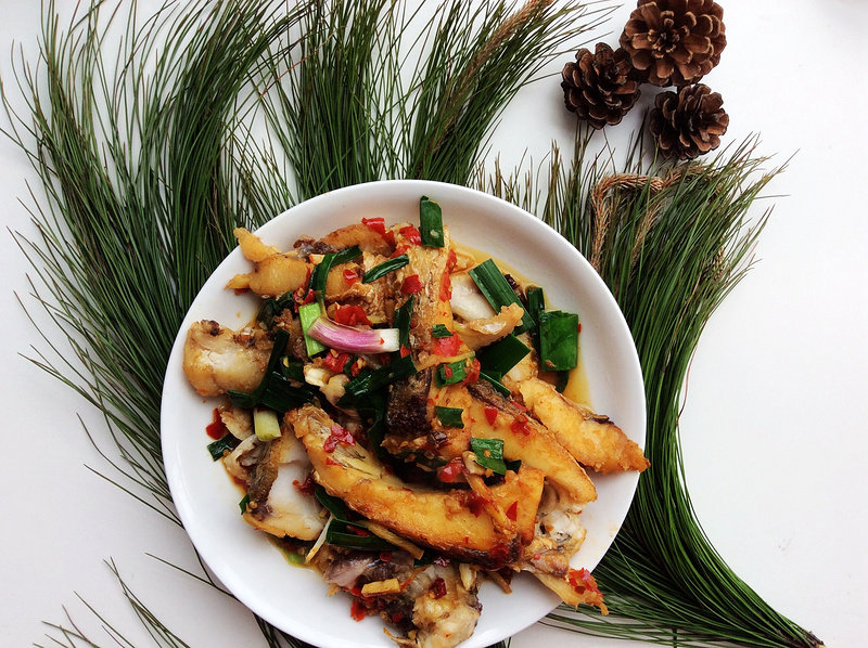 因鱼没有用油煎过,所以翻身时要小心别把鱼肉弄散。