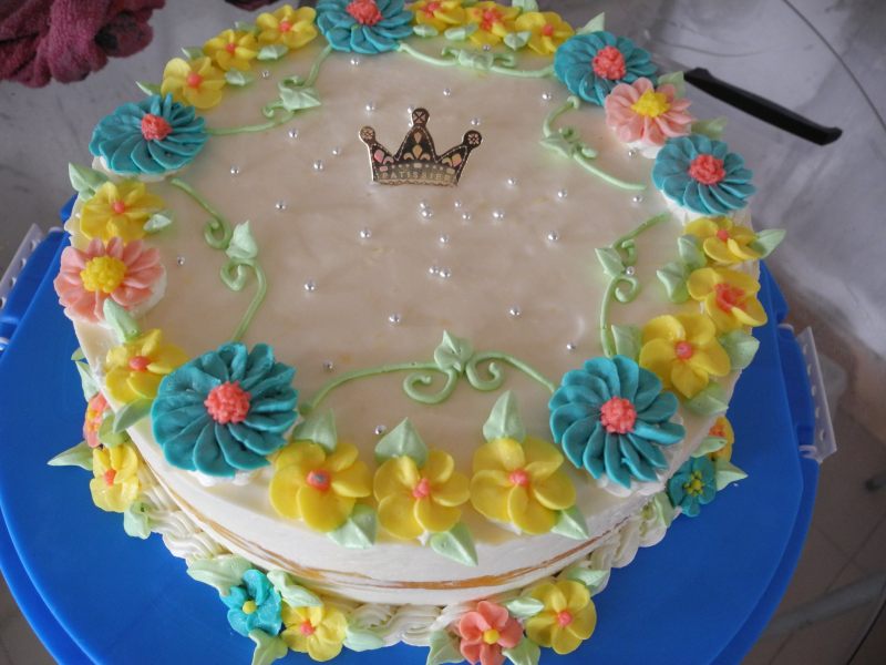 6:调出你喜欢的颜色进行裱花我用了惠尔通花嘴102103这是我裱的第一朵雏菊有点难看