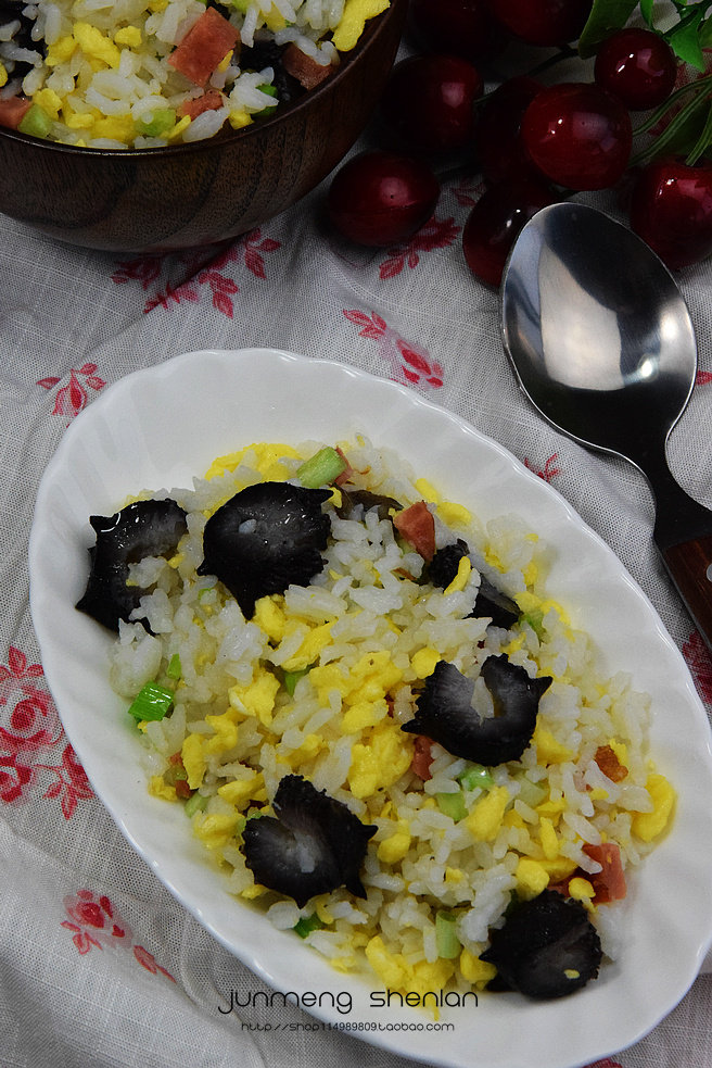 1:主料:即食野生大海参2枚、米饭500克配料:香葱、火腿适量,鸡蛋4枚调料:盐2小勺