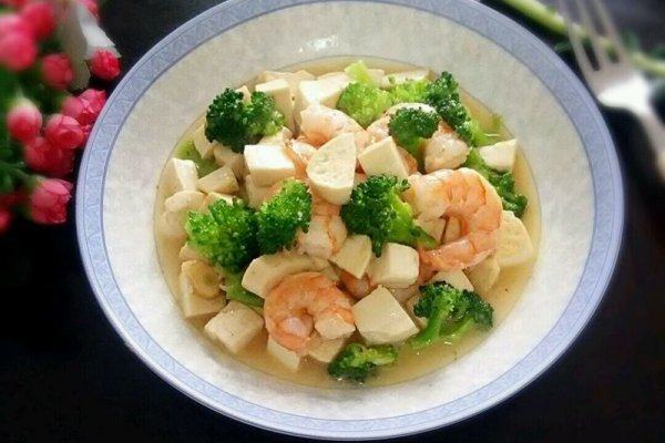 豆腐适量;鲜虾适量;