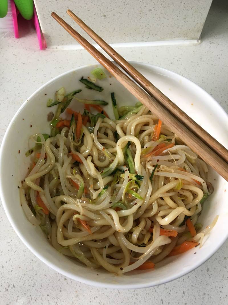 绿豆芽300g;胡萝卜1根;黄瓜1根;手擀面500g;