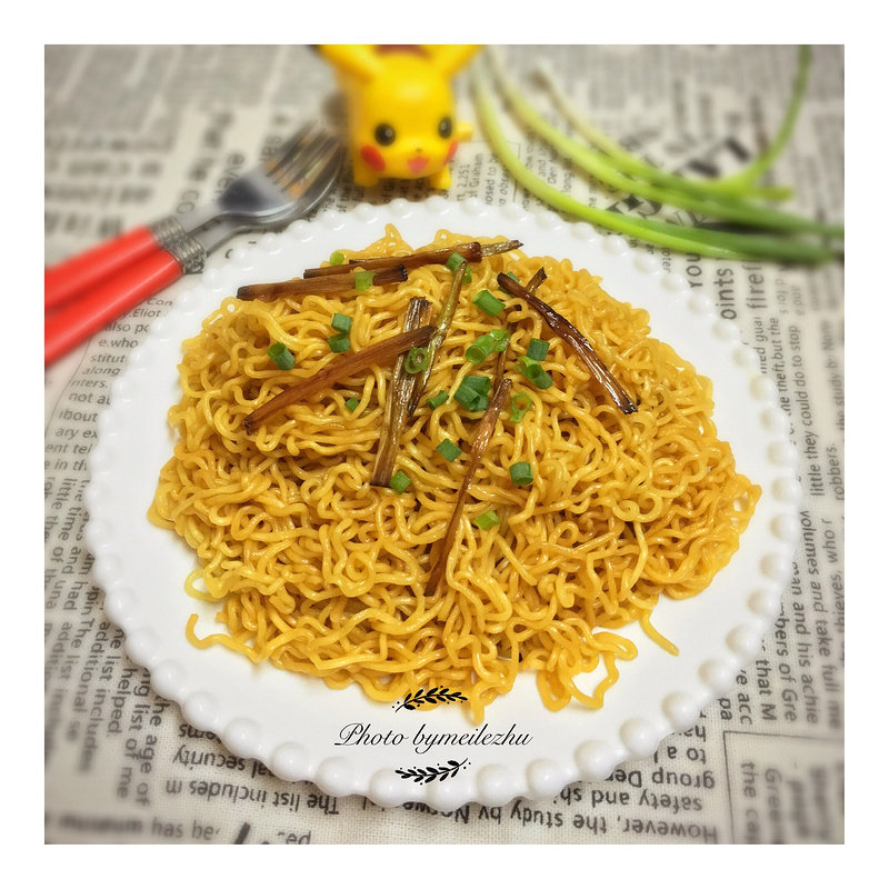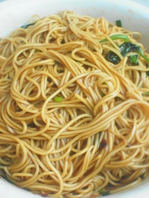 6:面条盛入碗中,洒上葱花,浇上葱油,加酱油,老抽拌匀即可