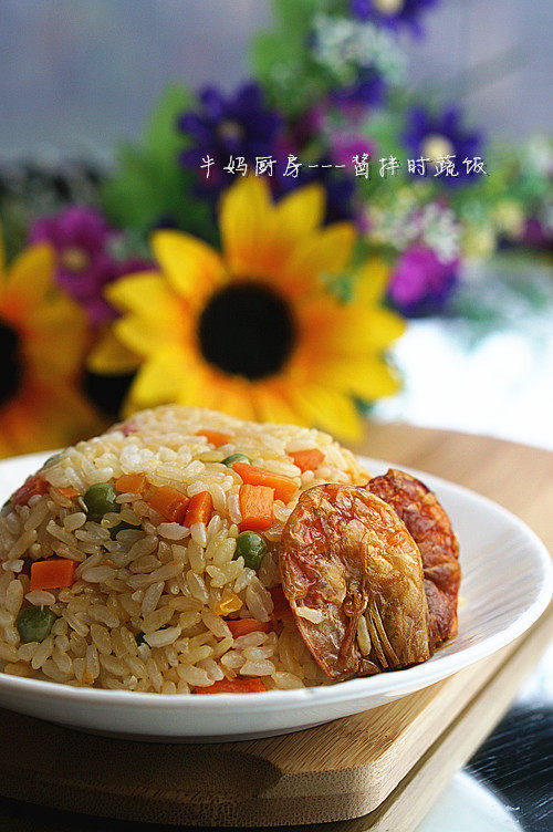 时蔬菜丁可以随自己喜好任意变化。加水量根据实际情况酌情添加。焖煮时保持中小火,以防底层焦糊而米粒不熟,出现夹生饭。