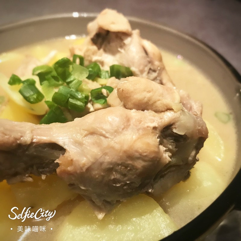 6:半小时后,厨房开始飘起鸡腿的鲜香味,土豆也开始变得松软,融化在鲜美的鸡汤中!此时美味的菜品无需过多调料,加上少许盐,胡椒粉和酱油简单调味即可!