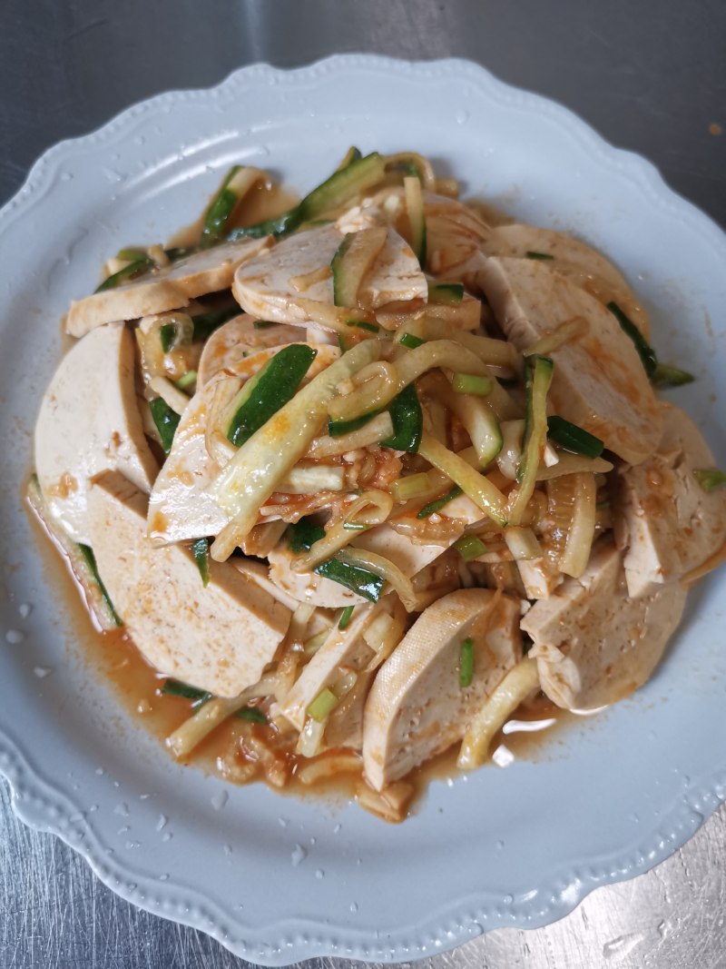 4:素鸡加黄瓜和蒜末。