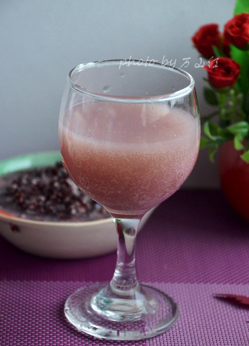 1:黑米用凉水浸泡一天,泡至米能用手碾碎的状态