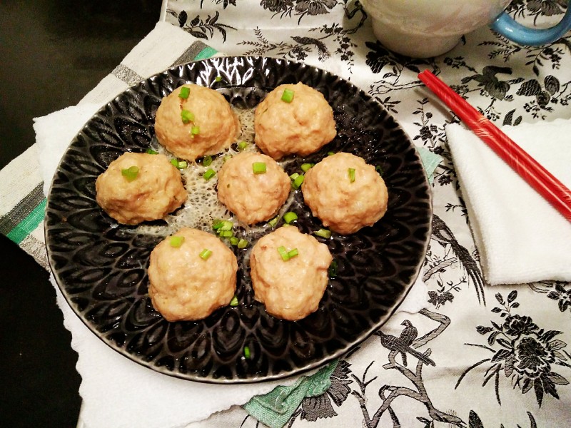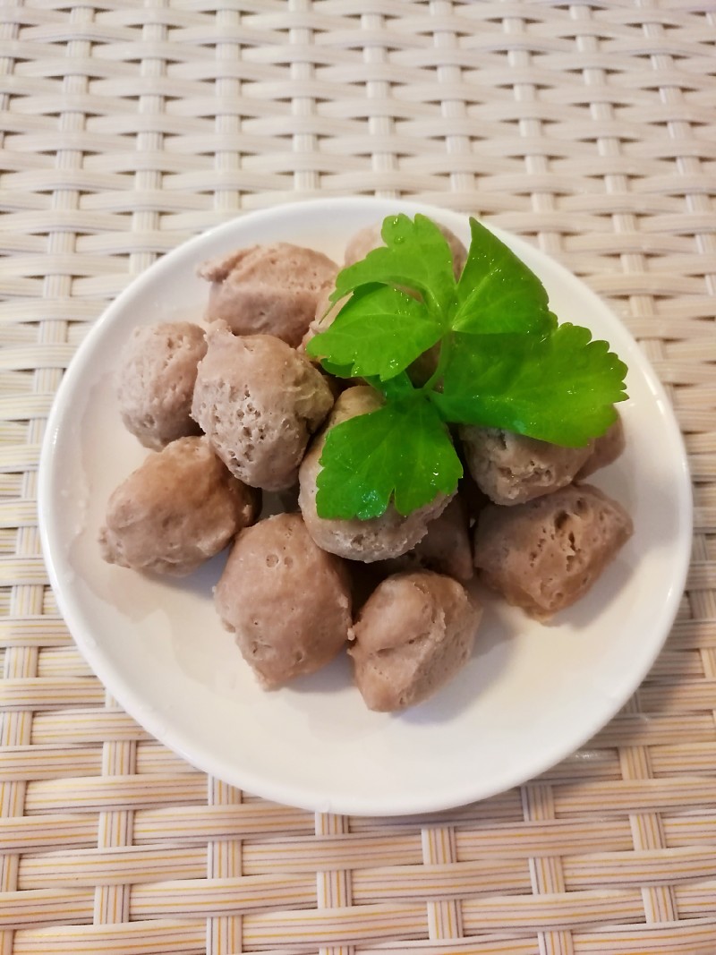 9:煮熟的猪肉丸,孩子喜欢趁热就这么拿着吃,原汁原味,鲜甜Q弹。
