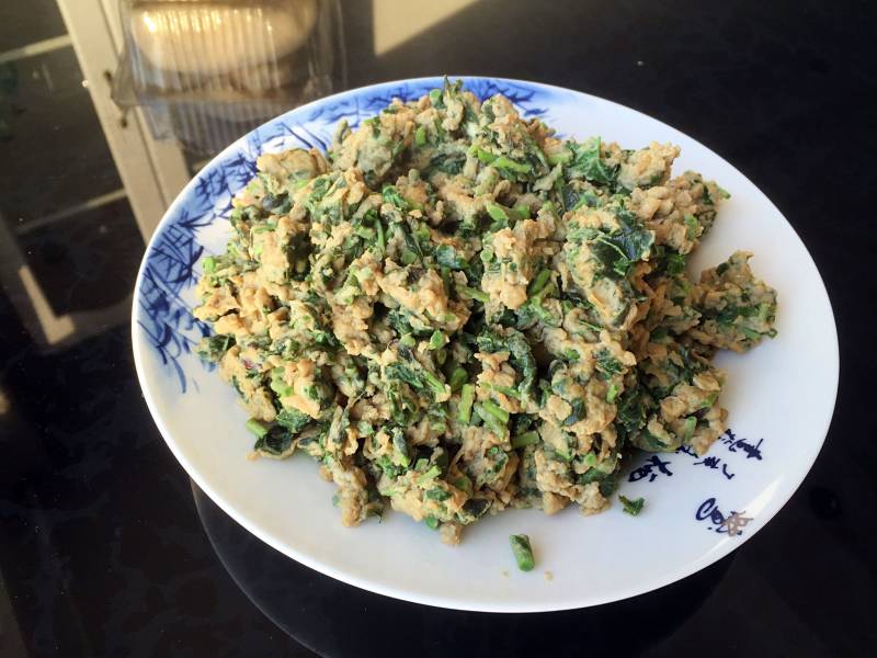 2:春芽,野葱切碎,备用。