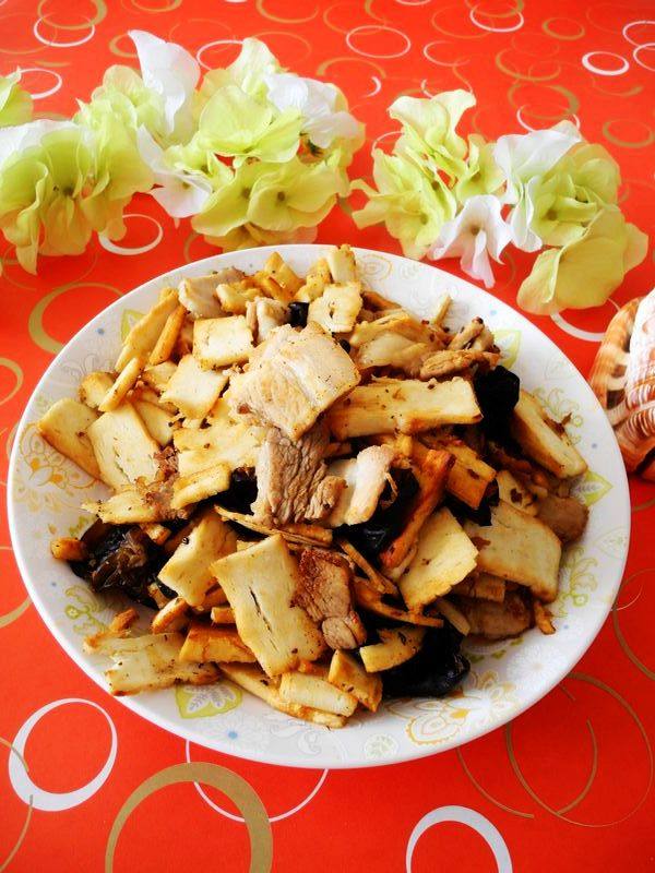 煮后的五花肉已经有7、8成熟了,炒的时候不用担心肉不熟哦