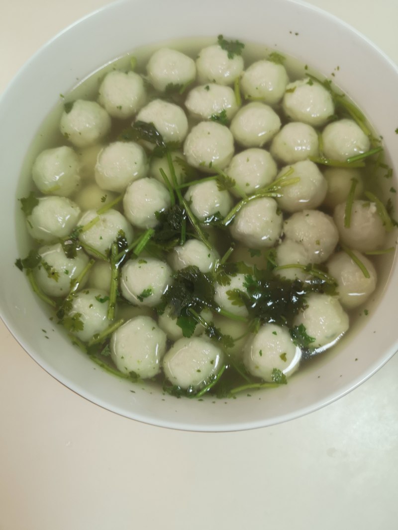 3:丸子飘起来放入盐味精鸡精胡椒粉半勺醋。
