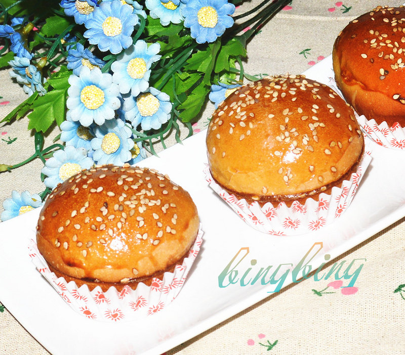 9:撒点芝麻烤箱预热,上下火180度烤15中左右,(烤箱温度各不同自己调节)