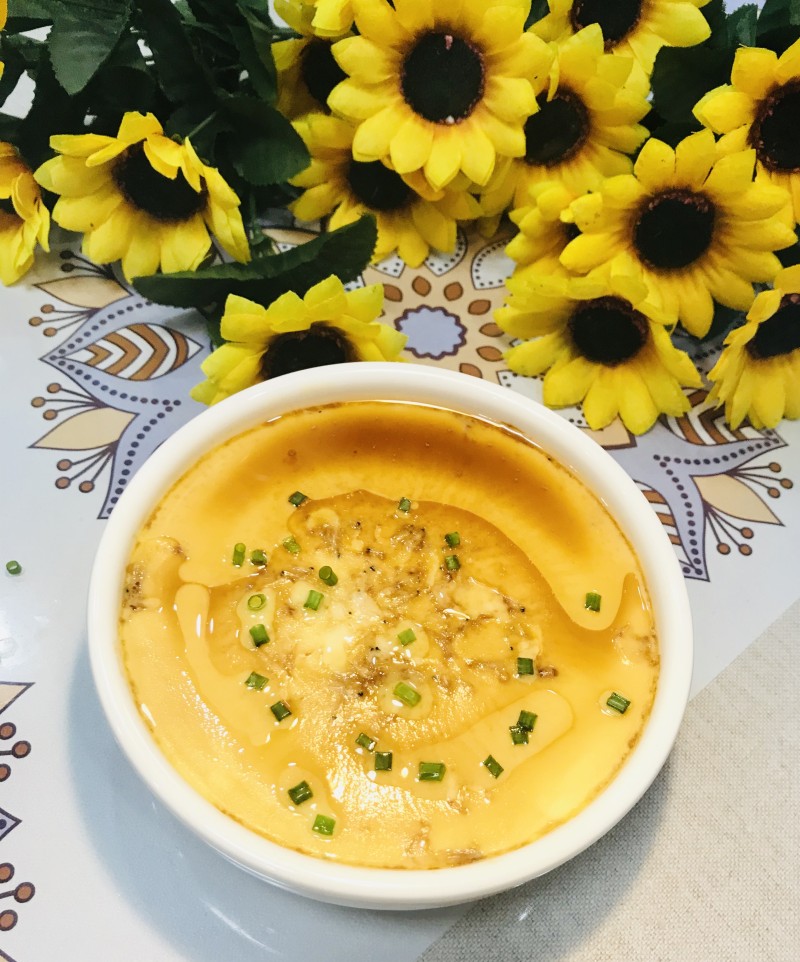 蒸好的蛋羹本身非常鲜美,只用一点点生抽调味即可,不必添加太多调味品。