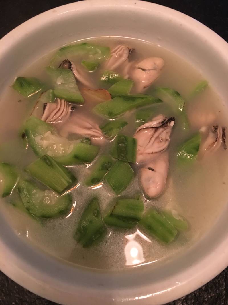 1:丝瓜刮皮切块,生蚝去壳取肉,可以在菜市场叫人取好肉出来。多清洗几遍。
