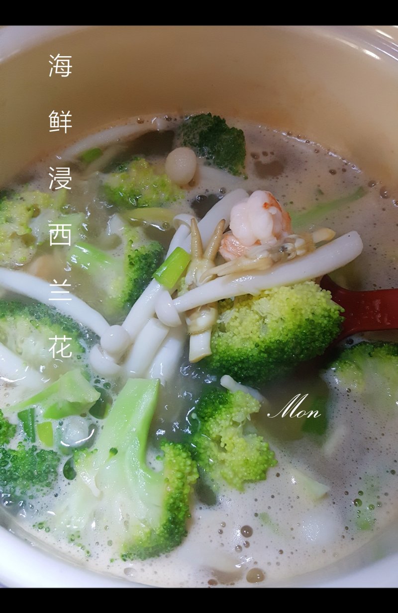 2:然后放入汤锅中,加入海鲜汤底(我菜谱中有海鲜汤底做法)。