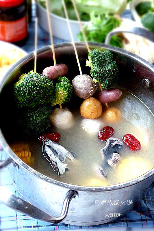 2:浓汤宝放水内煮开后下乌鸡、红枣枸、杞子煮10分钟左右