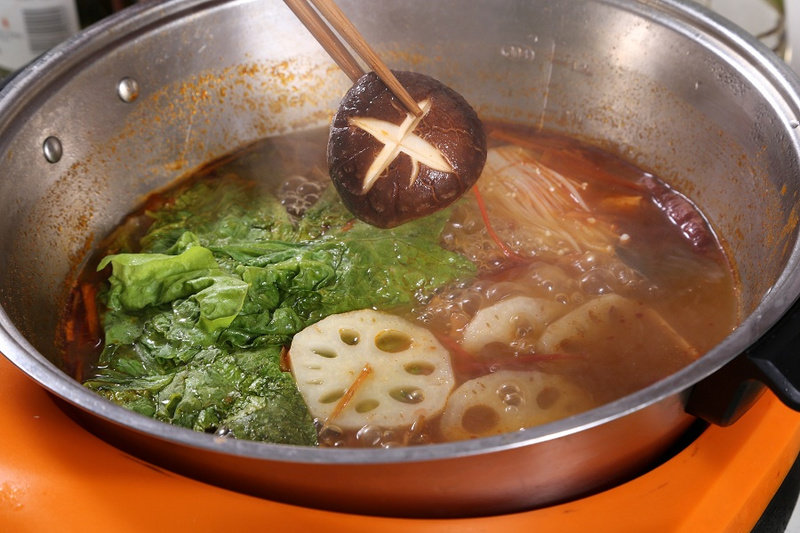 8:撒上秋葵段再炖十分钟就0k了。吃的时候可以潄入各种青菜、干菜、粉丝。