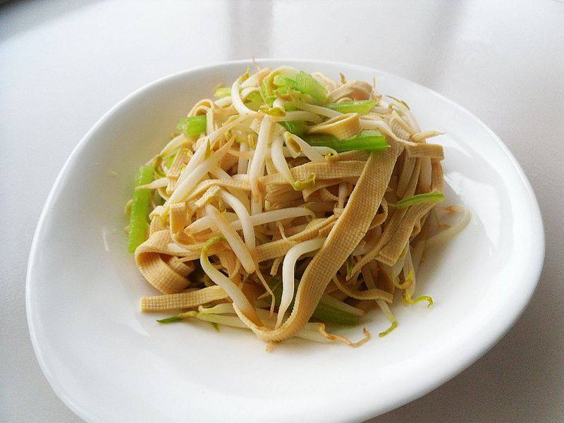 绿豆芽500克;芹菜2棵;干豆腐200克;