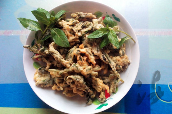 6:把烫好的薄荷和入面糊中搅拌均匀