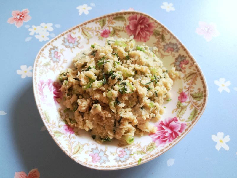 6:加入生抽和盐调味。豆渣比较干,可以直接干炒,要勤翻炒防止粘锅底,也可以加点清水,这样炒出来的豆渣会湿润些,主要还是看你喜欢吃什么样子的豆渣。豆渣成熟即可出锅。