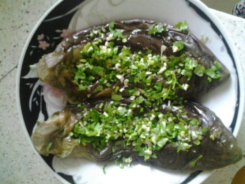 2:蒸好的茄子最好看一下有熟透没有,根据个人口味蒸熟程度自己适度调整