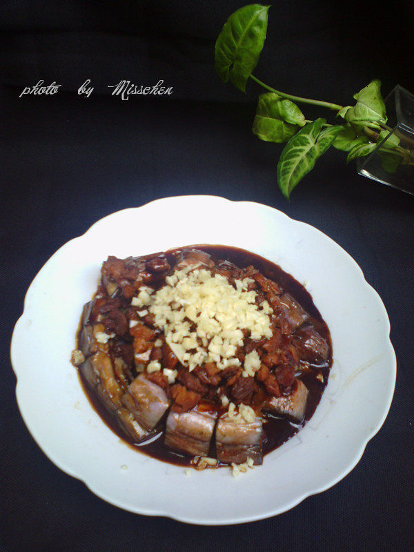 12:淋在茄子上放上蒜碎即可