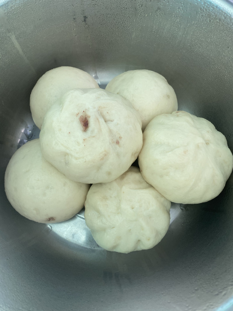 4:包好,放蒸笼发到两倍大,蒸十分钟即可。(蒸好后不要立即揭盖子,闷个几分钟,放在盆里盖着)。