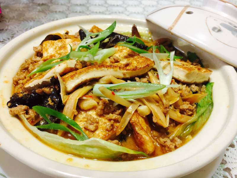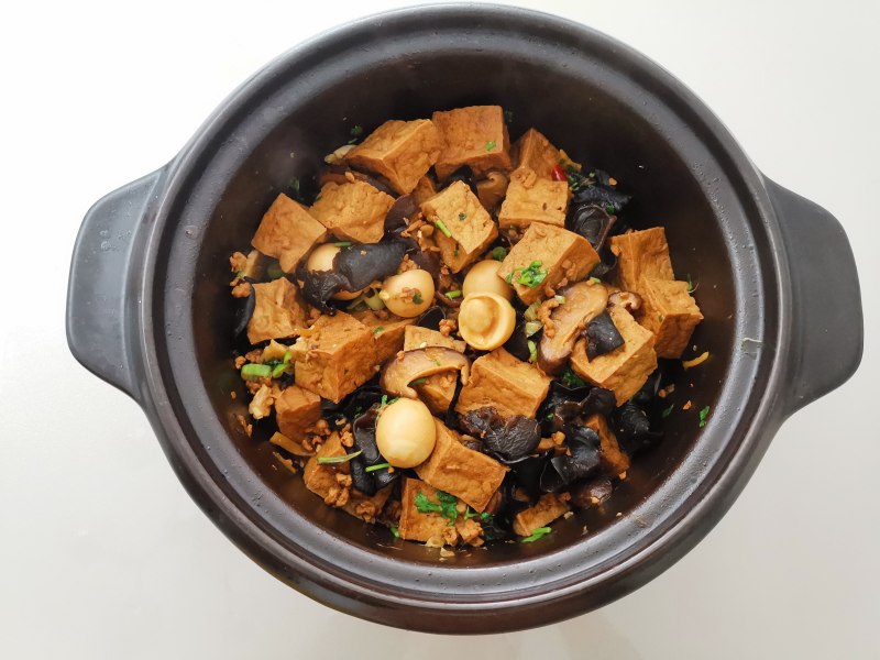 肉末双菇豆腐煲