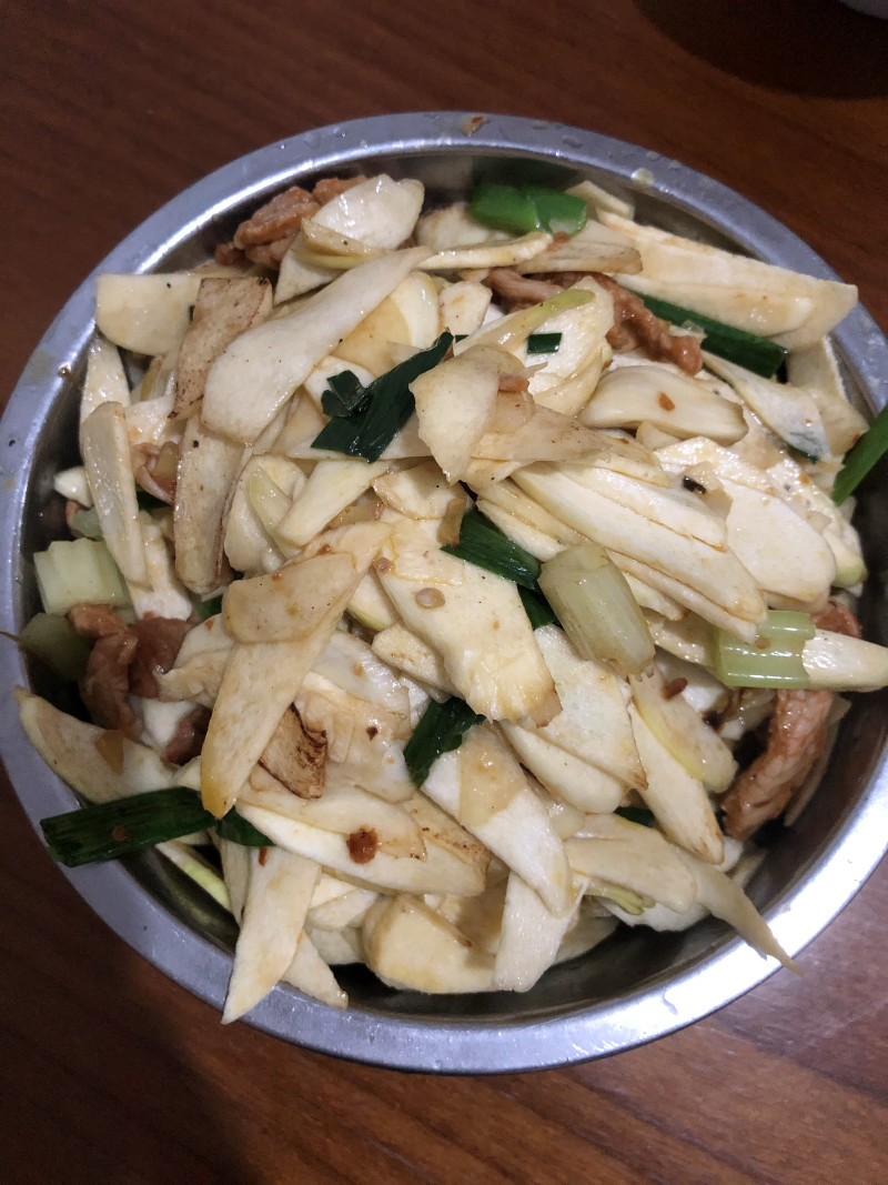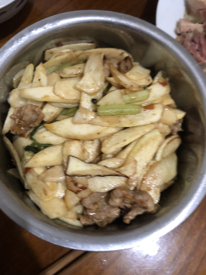 7:放入适量盐、高笋炒焉出锅放味精即可