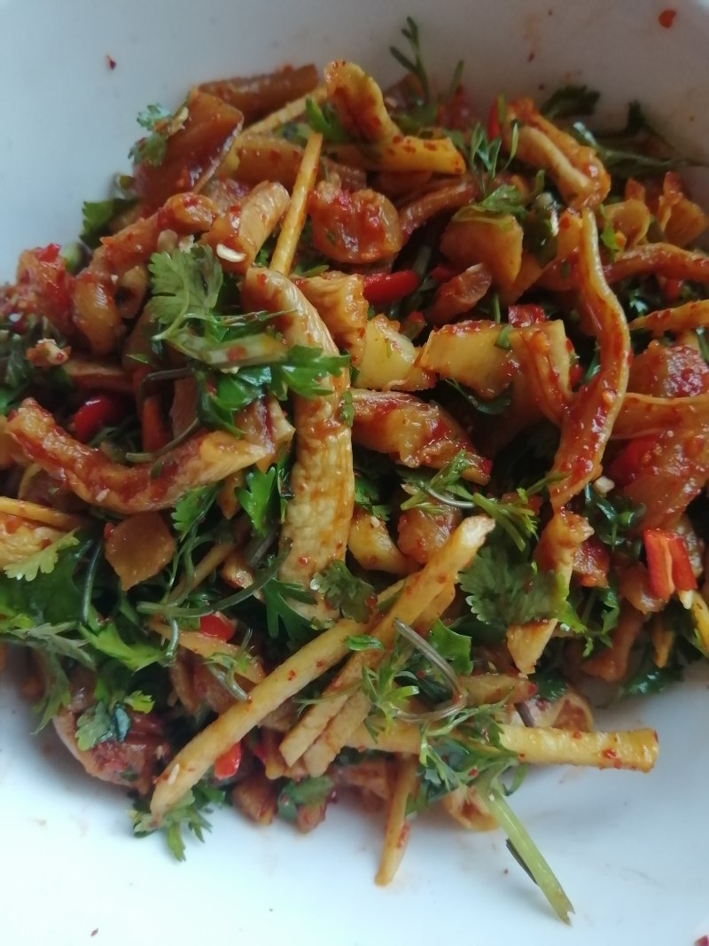 香菜少许;泰椒少许;盐适量;味精适量;糖适量;醋适量;生抽适量;韩式辣椒粉适量;蒜适量;