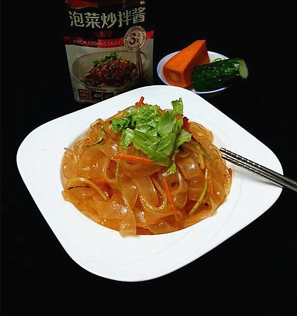 1、绿豆粉条:事先用清水浸泡下2、绿豆粉条:开水入锅煮3~5分钟即可3、绿豆粉条:煮好后立即过凉水,更劲道4、如果没有韩式炒拌酱,也可以根据喜欢调其它酱料拌食