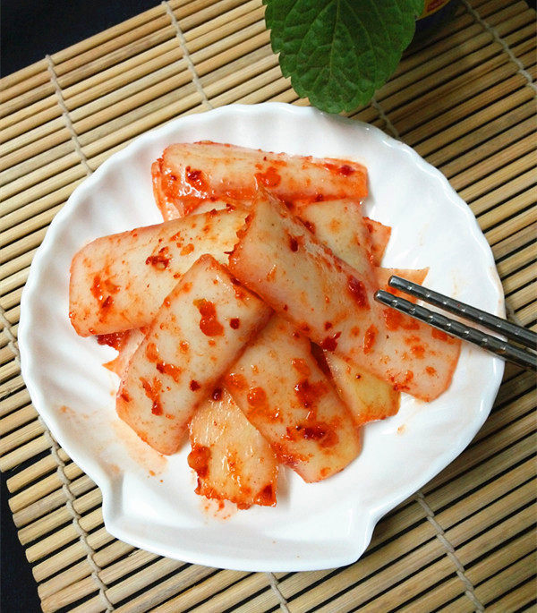 韩式萝卜条,一道看似简单却蕴藏匠心的传统小菜。其精髓在于选用新鲜白萝卜,经盐渍脱水后,以辣椒粉、鱼露、蒜末、姜丝及糖等调料悉心腌制。正宗做法讲究调味平衡,辣中带鲜,脆爽回甘,是韩国餐桌不可或缺的开胃伴侣。