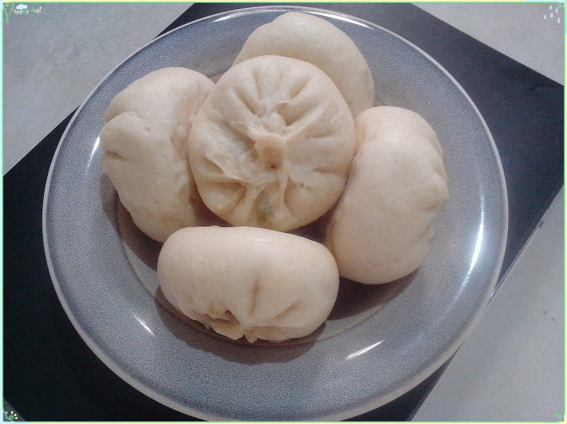 4:放入馅料包好开水入锅大火蒸20分钟,香喷喷的的包子登场,儿子说很好吃的,可惜偶减肥没敢吃,下次再包。