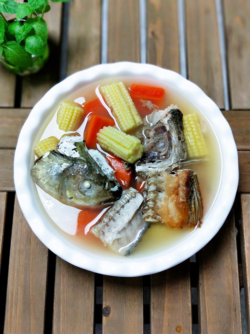 10:鱼头玉米笋胡萝卜汤味道鲜美,富含高蛋白和维生素,可以增强免疫力,且营养价值极高。