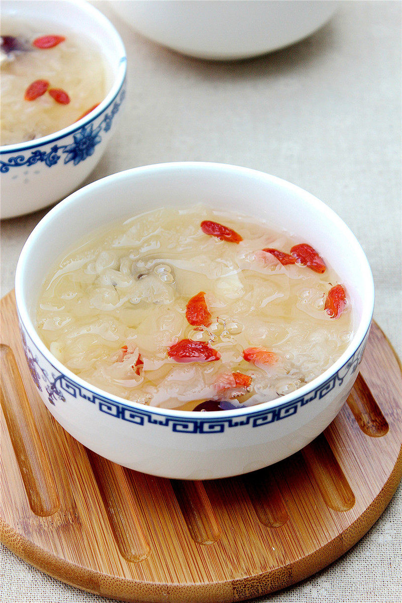 2:银耳事先用冷水泡开,去掉黄蒂,撕成碎朵