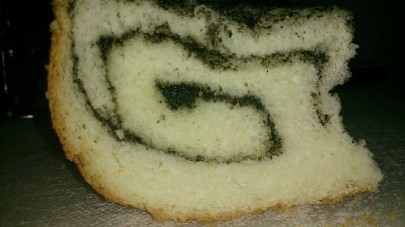 2:四个面团全部整型后放入面包机,正常发酵至八分满,刷上适量蛋液,调整烧色为浅,烤四十分钟。