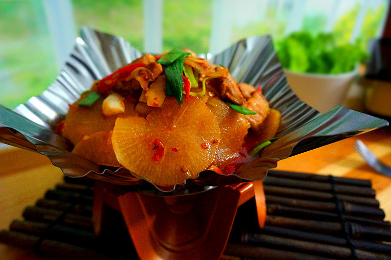 11:在加入白萝卜片,让每一片萝卜上都沾上酱料
