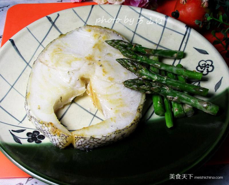 8:然后鱼扒装盘,配上芦笋沙拉即可享用