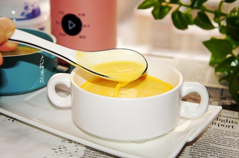 3:打好的南瓜羹先放凉,口感非常细腻,要是直接喝,可以加点冰糖入内搅打半分钟,就可以得到香甜好喝的南瓜羹了。