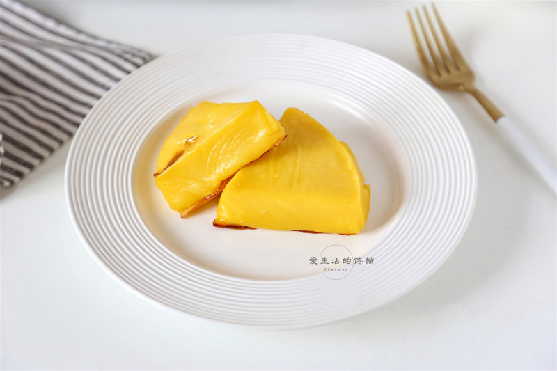 10:烤好的南瓜牛奶香气浓郁,金黄诱人,拿起来一块,咬一口,里面简直太嫩了,香甜的口感过口不忘,香极了!