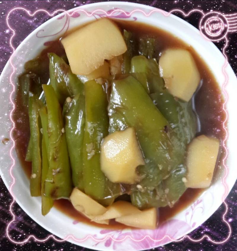 18:我喜欢最后用油爆下青椒再放到菜的上面。这样青椒既美味,又能保留原有的绿色,看起来更漂亮。青椒遇水就会变黄,最好不要一起煮