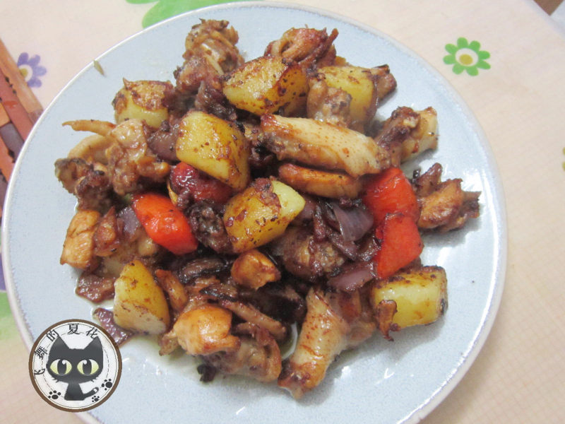 2:煎透加入土豆,加水,鲜酱油,盐,加盖煮至土豆熟即可。