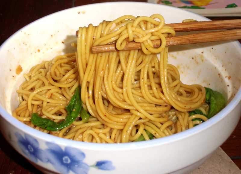 7:做好的油泼面,香气扑鼻,面条筋道~