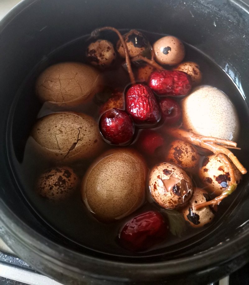 鸡蛋5只;鹌鹑蛋10只;黑豆20g;