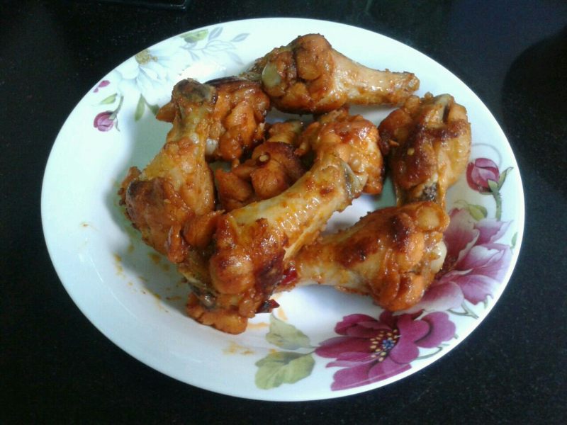 1:小鸡腿洗净沥干,用辣椒和烤翅调料抓匀