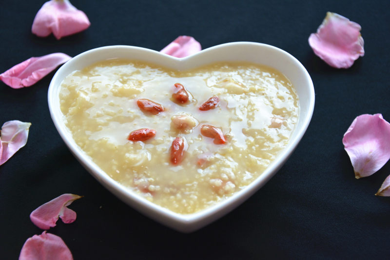 1:金龙鱼爱心桃花小米、莲子、枸杞、白砂糖。
